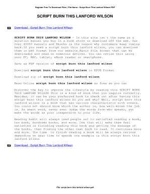 Free Download script burn this lanford wilson Kindle Editon By Click Button. script burn this lanford wilson it’s easy to recommend a new book category such as Novel, journal, comic, magazin, ect. You see it and you just know that the designer is also an author and understands the challenges involved with having a good book. You can easy klick for detailing book and you can read it online, even you can download it